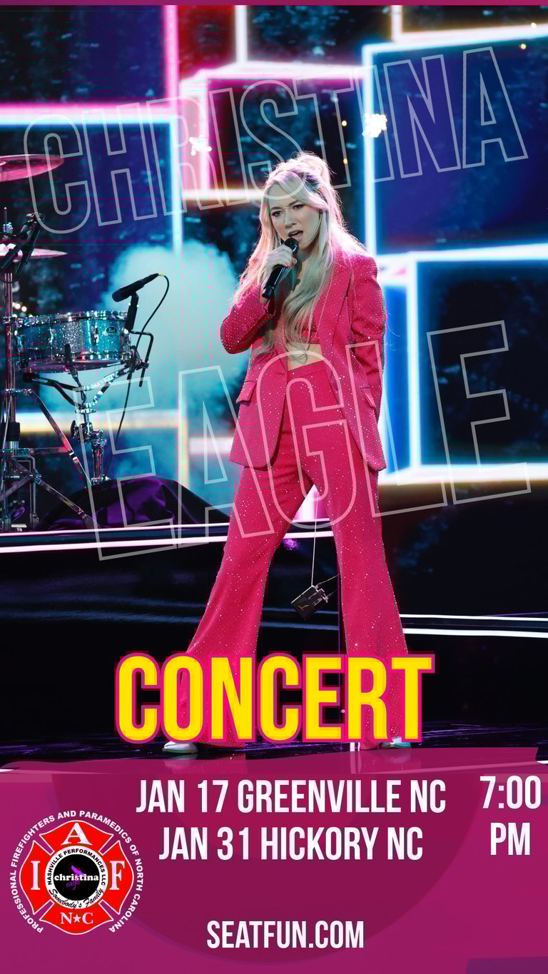 Get your tickets to see Christina Eagle who was on the Voice! You will be supporting the Professional Firefighters and Paramedics of NC.